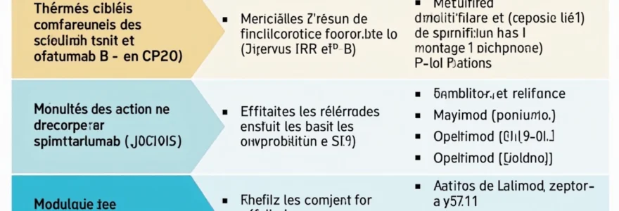 Les thérapies ciblant les lymphocytes B représentent une avancée majeure dans le traitement de la sclérose en plaques. Ces cellules immunitaires jouent un rôle crucial dans le processus inflammatoire caractéristique de la maladie. Deux médicaments en particulier, l’Ocrelizumab et l’Ofatumumab, ont montré des résultats particulièrement prometteurs.